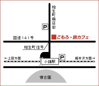 「こもろ・旅カフェ」は、小諸のまちづくりNPO活動の情報交流拠点として設置されました。