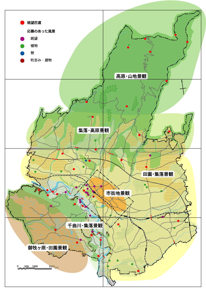 皆さんからお寄せいただいた「絵になる風景ポイント」をマッピングしていきます。 黒線のエリアをクリックして各エリア図から詳細情報をご覧ください。